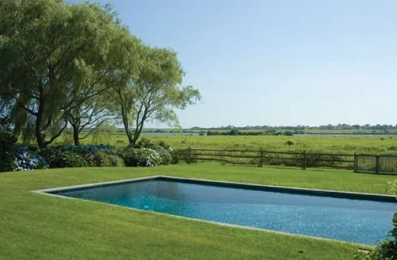 I love the look of pools with no fences or decking, I just think it looks so clean and natural. I would want a nicely done yard with beautiful big trees and flowers as well.